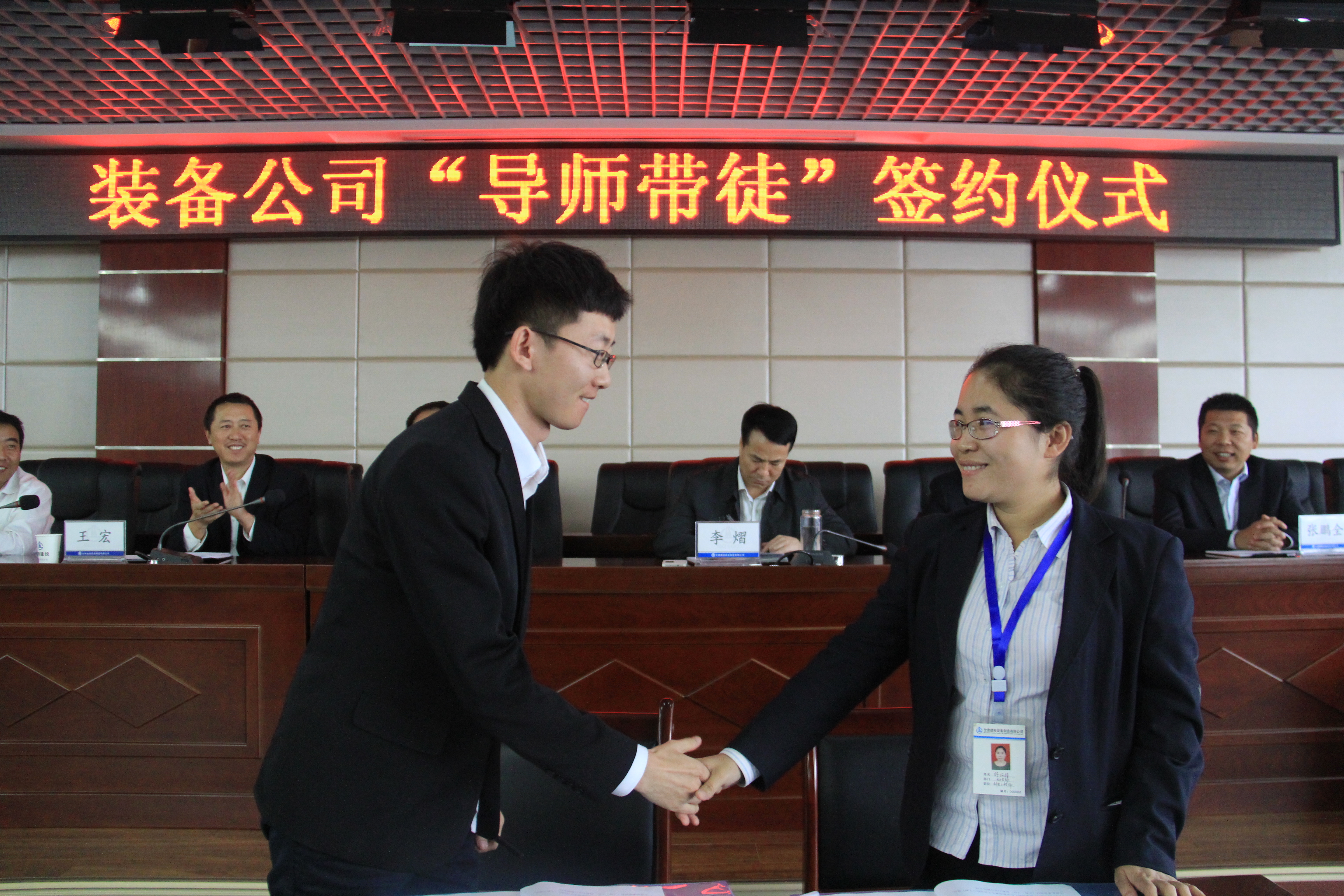 2014年9月25日,甘肅甘肅建投裝備公司在十樓會議室隆重舉行2014年度“導師帶徒”簽約儀式。裝備公司總經(jīng)理、黨委書記、工會主席、總工程師、生產(chǎn)總監(jiān)、財務總監(jiān)出席了此次會議。此次活動由裝備公司團委舉辦,主要目的是通過簽訂導師帶徒協(xié)議,引導青年員工在崗位上學習,幫助青年在崗位上成才,提高青年員工的整體素質,加快青年人才的培養(yǎng),不斷提升公司整體管理水平。今天的“導師帶徒”簽字協(xié)議活動共有四項議程。