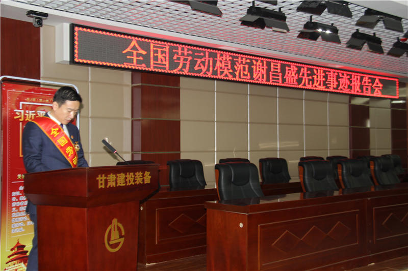 會議首先通過短片《足跡》,觀看謝昌盛同志從粉刷工到全國勞模的人生足跡?,F(xiàn)場的干部職工聚精會神地觀看短片,此起彼伏的掌聲不斷充斥著整個會場。接著,全國勞動模范謝昌盛同志作了事跡報告,當(dāng)說到“我是從大山里來的,走的再遠(yuǎn),也不能忘記來時的路”時,會場內(nèi)再次響起了熱烈的掌聲。1993年3月,謝昌盛剛滿18歲,懷著改變困難生活條件的樸素愿望,從秦安縣王鋪的一個小山溝溝里走出來,來到當(dāng)時的省六建,干了當(dāng)時以“最臟”“最苦”著稱的粉刷工,一干就是27年。至今,已累計參建150余個工程,無論是參與舟曲災(zāi)后重建、岷縣災(zāi)后重建,還是參加蘭州東湖廣場超高層等一大批重點建設(shè)項目,在20多年的抹灰貼磚作業(yè)中,始終努力爭做新時代的建筑工人,嚴(yán)格按規(guī)范施工,扎扎實實做好本職工作,確保了每項工程粉刷質(zhì)量,以實際行動回報黨組織和企業(yè)多年來的培養(yǎng)。