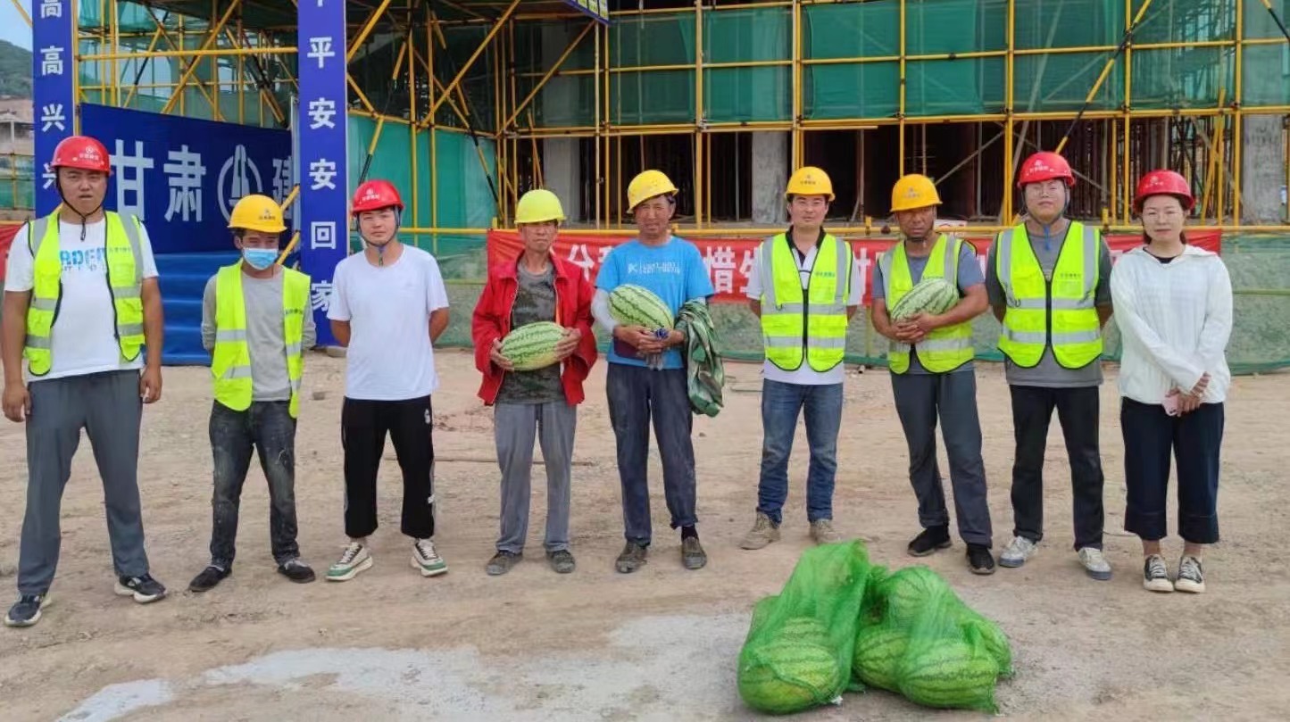 八月的康樂連續(xù)高溫,依然處于酷暑模式。為保證康樂縣工業(yè)集中區(qū)玻璃廠等單體如期完工,施工現(xiàn)場數(shù)百名工人不畏酷暑,始終堅守在施工一線。裝備公司康樂縣工業(yè)集中區(qū)項目部在確保施工任務(wù)進度的同時,把關(guān)心關(guān)愛職工落實在實處細處,開展防暑降溫送清涼活動,項目經(jīng)理及項目部管理人員分別到玻璃廠、餐廳會議廳、2#公寓以及廠房建設(shè)現(xiàn)場,為工人送去了西瓜等防暑降溫物品,并叮囑工人們保重身體,做好防暑降溫工作,為廣大職工送去了夏日的一絲清涼。