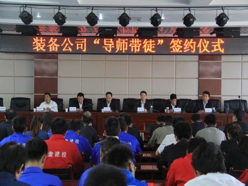 2014年9月25日,甘肅甘肅建投裝備公司在十樓會議室隆重舉行2014年度“導師帶徒”簽約儀式。裝備公司總經(jīng)理、黨委書記、工會主席、總工程師、生產(chǎn)總監(jiān)、財務總監(jiān)出席了此次會議。此次活動由裝備公司團委舉辦,主要目的是通過簽訂導師帶徒協(xié)議,引導青年員工在崗位上學習,幫助青年在崗位上成才,提高青年員工的整體素質,加快青年人才的培養(yǎng),不斷提升公司整體管理水平。今天的“導師帶徒”簽字協(xié)議活動共有四項議程。